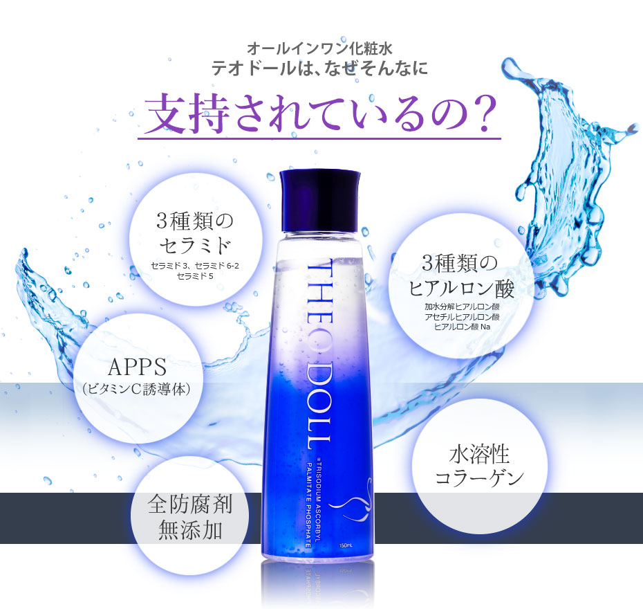 簡単2ステップ。3種のヒアルロン酸とビタミンC誘導体配合のお手軽化粧水 テオドール\1,480円(税抜) こちらの商品を購入する |